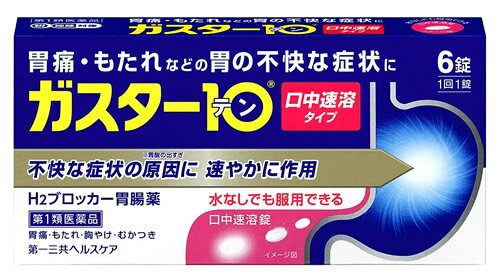 ◎【第1類医薬品】★定形外郵便で配送★ガスター10 S錠[口中溶解タイプ] 6錠/胃腸薬/H2ブロッカー/第一三共ヘルスケア★問診結果を購入履歴からご確認ください。承諾をいただけてからの発送となります。【セルフメディケーション税制対象】