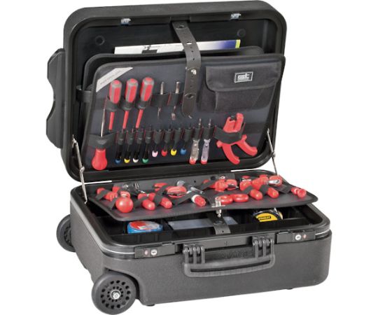 商品名:GT Line ツールケース ニューメガホイール PEL 1個 NMWHEELSPEL●耐衝撃性に優れた移動式工具箱です。●TSAロック付きのため飛行機移動にも適しています。●色:ブラック●外形寸法(mm)間口:554●外形寸法(mm)奥行:447●外形寸法(mm)高さ:252●有効内寸(mm)間口:453●有効内寸(mm)奥行:345●有効内寸(mm)高さ:185●耐荷重(kg):30●最大荷重重量(kg):30●上蓋部:書類入れ付き●ツールプレート2枚付き●底部:仕切り板で調整可能●TSAロック付●材質/仕上:高密度ポリエチレン(HDPE)●セット内容/付属品:鍵2本●原産国:ルーマニア●コード番号:359-0427