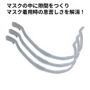 ※こちらの商品はお得な3本セットの商品です※ 【商品説明】 マスクの中に空間をつくる♪ マスクインナーフレーム!! マスクをしているとこんな悩みありませんか? ・息をするたび、マスクが口や鼻にくっついて呼吸がしづらい ・マスクが肌にくっつき、ファンデーションや口紅がべっとりついていた ・マスクの繊維が肌にあたり、ムズムズして痒くなる ・とにかくマスクのの中が暑く、息苦しい そんな時、このマスクインナーフレームを装着すると マスクの中に空間ができる! わずかでも隙間を作るだけでもマスク生活が快適に♪ 市販の不織布マスク (横幅17.5cmのふつうサイズ)に 装着すると半円形の立体空間ができ、 顔にマスクが張り付きにくくなるので、 マスク着用の悩みが解消! ・マスクの中が蒸れない ・呼吸がしやすくなる ・会話がラクになる ・メイク崩れの防止になる ・肌荒れの防止になる 蒸し暑い時期や夏などの不快感を軽減し、 ウォーキングやランニング時の呼吸も楽になります。 また、肌に触れる感覚が軽減されるので、 化粧崩れの防止にもなり、メガネの曇りも軽減されます。 重さが約1.5gととても軽いので、 装着しても耳に負担をかけず、 装着後の違和感も感じません。 両サイドのクリップ部分で挟むだけの簡単装着! クリップ部分でしっかりとマスクを挟み、 フレーム自体がズレ防止のデザインとなっているので、 運動やスポーツをする時でもズレにくく、 食事などでマスクを外す際もフレーム自体は外れにくい。 フレームの装着する場所を変えたり、 2本装着するなど複数装着することにより、 顔の形に合わせて装着することも可能。 水洗いやアルコール消毒も出来るので、 洗って繰り返しご利用いただけます。 ======================================== 商品仕様 サイズ:画像をご参照下さい 重さ:約1.5g 対応サイズ:17?17.5cm(市販の不織布マスク ふつうサイズ) 内容量:3個 素材:ポリプロピレン ※入荷時期によりフレームのR(湾曲部分の弧の角度)は前後します※ ※ 市販の不織布マスク(175mmのふつうサイズ)専用となります ※ 個人差がありますので、フレームの位置や2本同時装着など お顔に合わせてご使用ください ※装着位置によって、隙間が空きすぎて マスクの意味が無くなってしまうのでご注意下さい ========================================