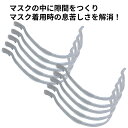 ※こちらの商品はお得な10本セットの商品です※ 【商品説明】 マスクの中に空間をつくる♪ マスクインナーフレーム!! マスクをしているとこんな悩みありませんか? ・息をするたび、マスクが口や鼻にくっついて呼吸がしづらい ・マスクが肌にくっつき、ファンデーションや口紅がべっとりついていた ・マスクの繊維が肌にあたり、ムズムズして痒くなる ・とにかくマスクのの中が暑く、息苦しい そんな時、このマスクインナーフレームを装着すると マスクの中に空間ができる! わずかでも隙間を作るだけでもマスク生活が快適に♪ 市販の不織布マスク (横幅17.5cmのふつうサイズ)に 装着すると半円形の立体空間ができ、 顔にマスクが張り付きにくくなるので、 マスク着用の悩みが解消! ・マスクの中が蒸れない ・呼吸がしやすくなる ・会話がラクになる ・メイク崩れの防止になる ・肌荒れの防止になる 蒸し暑い時期や夏などの不快感を軽減し、 ウォーキングやランニング時の呼吸も楽になります。 また、肌に触れる感覚が軽減されるので、 化粧崩れの防止にもなり、メガネの曇りも軽減されます。 重さが約1.5gととても軽いので、 装着しても耳に負担をかけず、 装着後の違和感も感じません。 両サイドのクリップ部分で挟むだけの簡単装着! クリップ部分でしっかりとマスクを挟み、 フレーム自体がズレ防止のデザインとなっているので、 運動やスポーツをする時でもズレにくく、 食事などでマスクを外す際もフレーム自体は外れにくい。 フレームの装着する場所を変えたり、 2本装着するなど複数装着することにより、 顔の形に合わせて装着することも可能。 水洗いやアルコール消毒も出来るので、 洗って繰り返しご利用いただけます。 ======================================== 商品仕様 サイズ:画像をご参照下さい 重さ:約1.5g 対応サイズ:17?17.5cm(市販の不織布マスク ふつうサイズ) 内容量:10個 素材:ポリプロピレン ※入荷時期によりフレームのR(湾曲部分の弧の角度)は前後します※ ※ 市販の不織布マスク(175mmのふつうサイズ)専用となります ※ 個人差がありますので、フレームの位置や2本同時装着など お顔に合わせてご使用ください ※装着位置によって、隙間が空きすぎて マスクの意味が無くなってしまうのでご注意下さい ========================================