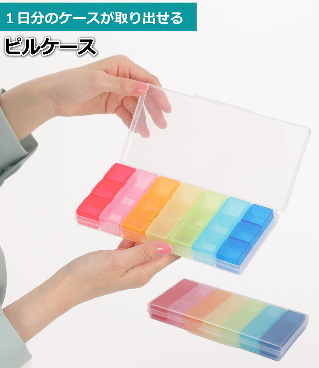 ピルケース 1週間分の薬を保存 1日分のケースが取り出せるので旅行や出張時に便利 7つのカラーで用途別の使用も可能 薬やサプリの保存だけでなく、ビーズ 釣り具 レゴ 各種部品等の細かなアイテムの保存保管にも 日本製 送料無料 ポスト投函便 1日分のケースが取り出せるので、旅行や出張時の薬の持ち歩きに便利 薬やサプリメントが1週間分保存できる 小分けケース7個付きのピルケース小分けケースは取り出しが可能なため、短期の旅行や出張時に1日分・2日分のお薬を持ち運ぶことができます。安心安全な日本製 外寸(約)・179×85×高さ20mm(小分けケース:25×76×高さ17mm)●耐熱120度/耐冷-20度●材質・ポリプロピレン 2
