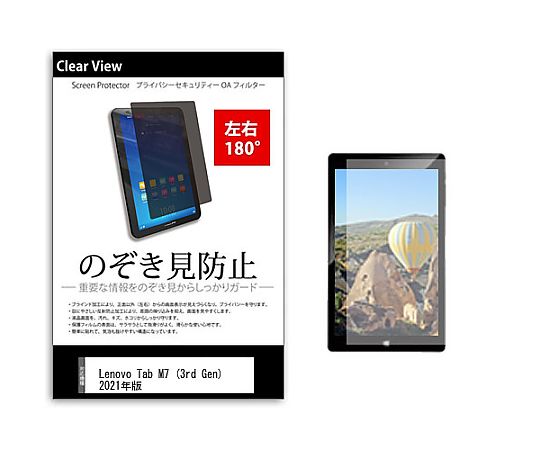 ●液晶画面の左右方向(180度)からの視線を遮り、プライバシーをしっかり保護します。●正面からはクリアな表示を確保。タブレットを縦向きに使用する場合は左右、横向きでは上下からの覗き見を防ぎます。●ブルーライトを効果的にカットし、目の疲れを軽減。長時間の作業にも適しています。●反射防止(アンチグレア)加工により、蛍光灯や日光の映り込みを抑え、画面を見やすく保ちます。●タッチパネル操作やペン入力にも対応しており、操作性を損ないません。●適合機種:Lenovo Tab M7 (3rd Gen) 2021年版●対応インチサイズ:7インチ 解像度(1024x600)●フィルム特性:のぞき見防止180度●紫外線カット率:99%●硬度:3H●内容量:1枚●付属品:クリーニングクロス、ヘラ●●ご購入前の注意点●▼本製品は液晶画面の表示領域のみをカバーする仕様です。ディスプレイ全体を覆うものではありません。●▼貼り付け時は液晶画面を強く押さえず、丁寧に作業してください。●▼貼付前にサイズの確認と位置合わせを行い、剥離フィルムは一度に全て剥がさず、少しずつ剥がして貼り付けてください。●▼ホコリや汚れが残っていると気泡の原因になりますので、必ず画面を清掃してからご使用ください。●記載された製品名やブランド名は、適合サイズの説明の便宜上使用しており、各社の商標または登録商標です。●当製品は互換品となります。公式メーカーが販売、製造するものではございません。純正品ではないことをご了承ください。●※※事業者向け商品です※※