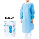 使い捨てガウン プラスチックガウン 袖付き 51096 1箱15枚入り ブルー フリーサイズ F ゴム袖式 ポリエチレン製 防水 (サラヤ)