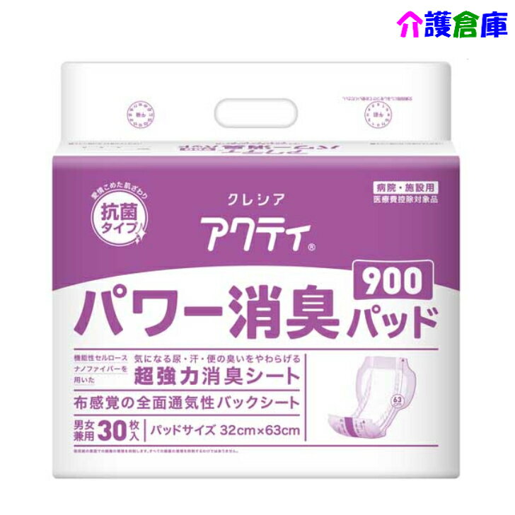 アクティ パワー消臭パッド900 30枚(1袋) 日本製紙クレシア 介護用オムツ/おむつ/尿とりパッド/男女兼用/ メーカー:日本製紙クレシア尿・汗・便の臭いをやわらげる、機能性セルロースナノファイバーを用いた超強力消臭シートを採用。ワイド&ダブル吸収体で、尿や広がる軟便のモレもしっかりガード。お肌さらさらシートで、尿をすばやく吸収、逆戻りも防止。身体の中心に合わせやすいカラーのセンターライン。商品詳細入数:30枚サイズ:パッドサイズ:32×63cm総吸収量目安:約1600cc注意事項※商品パッケージや仕様は予告なく変更される場合がありますので予めご了承ください。※複数店舗で販売の為、表記している在庫と実在庫は異なる場合がございます。予めご了承下さい。 2