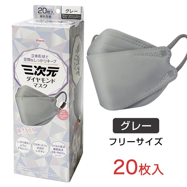 [12月のセール] 三次元ダイヤモンドマスク フリーサイズ グレー 20枚入 - 興和 [三次元マスク/立体マスク]