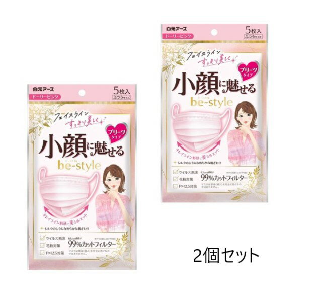 【3日20時から先行セール開始】ビースタイル プリーツふつうドーリーピンク5枚 ×2個セット 小顔に魅せる マスク 小顔マスク 使い捨て 大人用 白元アース 血色マスク おしゃれ 人気