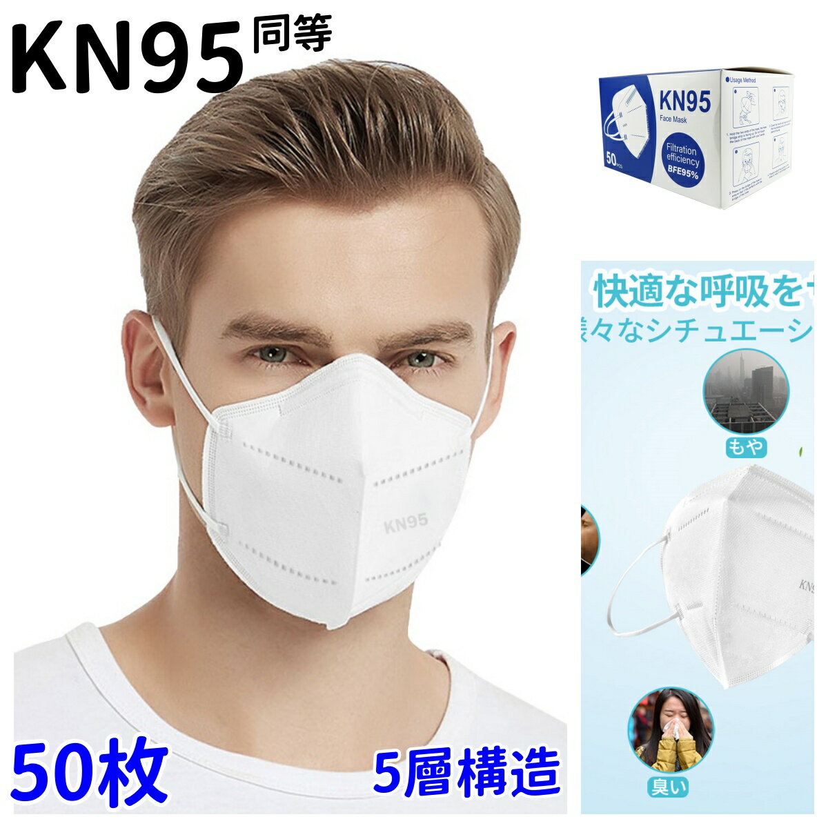 セール!!!即納 KN95 マスク マスク CE認証済 同等KN95 マスク N95 MASK KN95 立体縫製 不織布 PM2.5対応 5層構造 3D加工 ウィルス対策 飛沫カット 花粉対策 風邪予防 防塵マスク 個装タイプ 男女兼用 ホワイト 50枚
