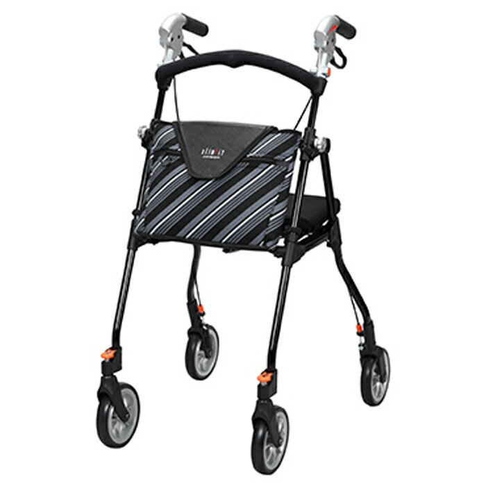 【最大1000円OFFクーポン!12月11日1:59まで】ユーバ産業 歩行車 超軽量 スリムフィット・座面付 ラージ SL-0680WS-BK ストライプ・ブラック 高齢者 歩行補助具 シルバー用品 ブレーキ搭載 折畳み式 折りたたみ 幅広めタイヤ【送料無料】【KK9N0D18P】