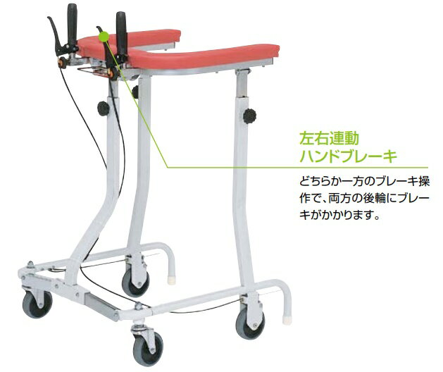 ※当商品は代金引換決済はご利用できません。 ※配送先が個人宅の場合は、別途送料が発生致しますので、上記項目選択肢の配送先欄で配送先をご選択下さい。 配送先が法人住所の場合は、表札・看板等に記載の法人名、施設名を配送先ご住所にご記載下さい。 ※送料が発生する場合は、後ほど自動配信メールでご案内致しました金額から変更して、再度ご請求金額をご案内致します。 ●重量/約12kg ●寸法/幅59×奥行き61.5 高さ92.5〜110cm ●その他サイズ/添付写真参照ください ●特徴/ ・立位の左右連動ハンドブレーキ付の在宅向け歩行車 ・オプション部品の取り付けをご希望の場合は、別途お見積りとなります。