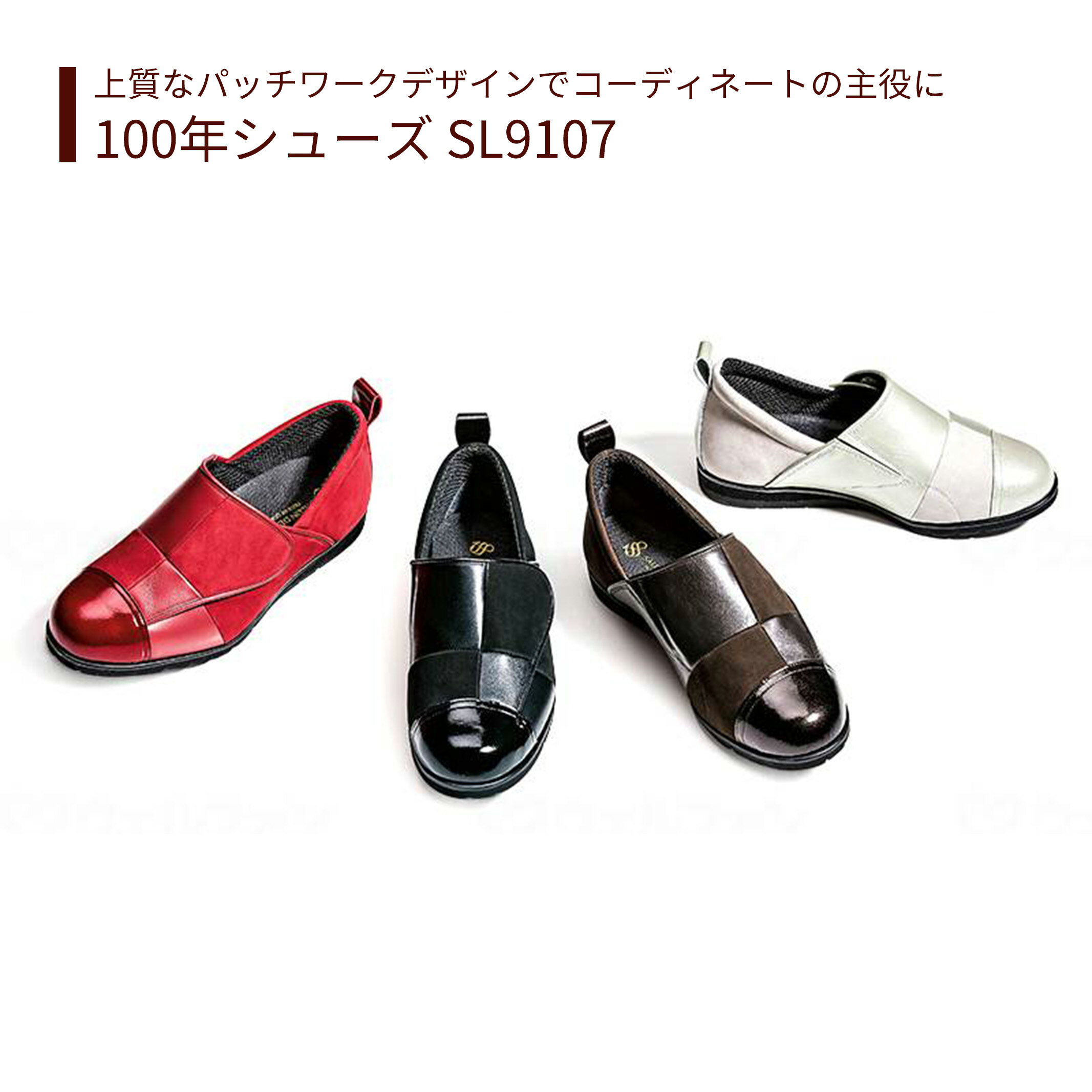 商品情報商品名100年シューズ SL9107名称・商品区分靴重量(片足M)220g靴底素材○表材:牛革○底材:EVA、合成ゴム広告文責(株)正業 : TEL0438421666メーカーサロンドグレー【靴】 歩行 シューズ ブーツ 面ファスナー 外反母趾 むくみ 腫れ 甲高 快適 肌に優しい S M L レディース メンズ 男女兼用 送料無料 おしゃれ 軽量 介護 高齢者 母の日 父の日 敬老の日 プレゼント 【100年シューズ SL9107】 上質なパッチワークデザインでコーディネートの主役に。 2