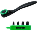 ●ラチェットレンチMini(DR-37)と潰れた六角穴付ボルトを叩かず外せるネジモグラ極短4本組(DBZ-303)のセット。●独自の先端形状により、潰れた六角穴付ボルトを叩かず外せます。●グリップは耐トルク93N・mを誇るパワフル設計。●送り角5度の精密ギアで狭い場所での作業に便利。●早回しギアで作業能率が向上。●収納、持ち運びに便利な専用ビットホルダー付き。●潰れた六角穴付ボルトの取り外しに。●狭い場所での作業に。●現場での修理、整備、自動車、バイク、自転車のメンテナンス、日曜大工に。●パイプなどでグリップを延長して使用しないでください。●錆や接着剤などで完全に固着したネジには使用できない場合があります。●DBZ-325●DBZ-330●DBZ-340●DBZ-350●DR-37●ビットホルダー●セット点数:5●対応ネジ:対辺2.5・3・4・5mmの六角穴付きボルト●軸対辺:6.35mm●ビット全長(mm):18●全長(mm):90●幅(mm):19●厚さ(mm):23●重量(g):83●材質:【ビット】炭素鋼/【ビットホルダー】エラストマー