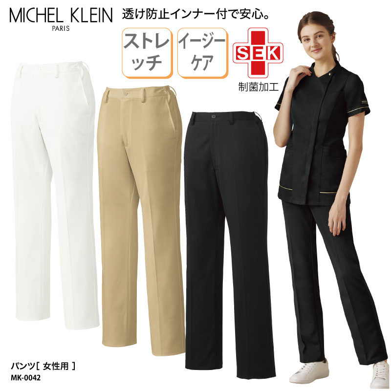 パンツ ミッシェルクラン MICHEL KLEIN レディス 医療 メディカル ナース トリコット 介護 制服 介護制服 医師 看護師 薬剤師 ユニフォーム 大きいサイズ ホワイト ブラック ベージュ