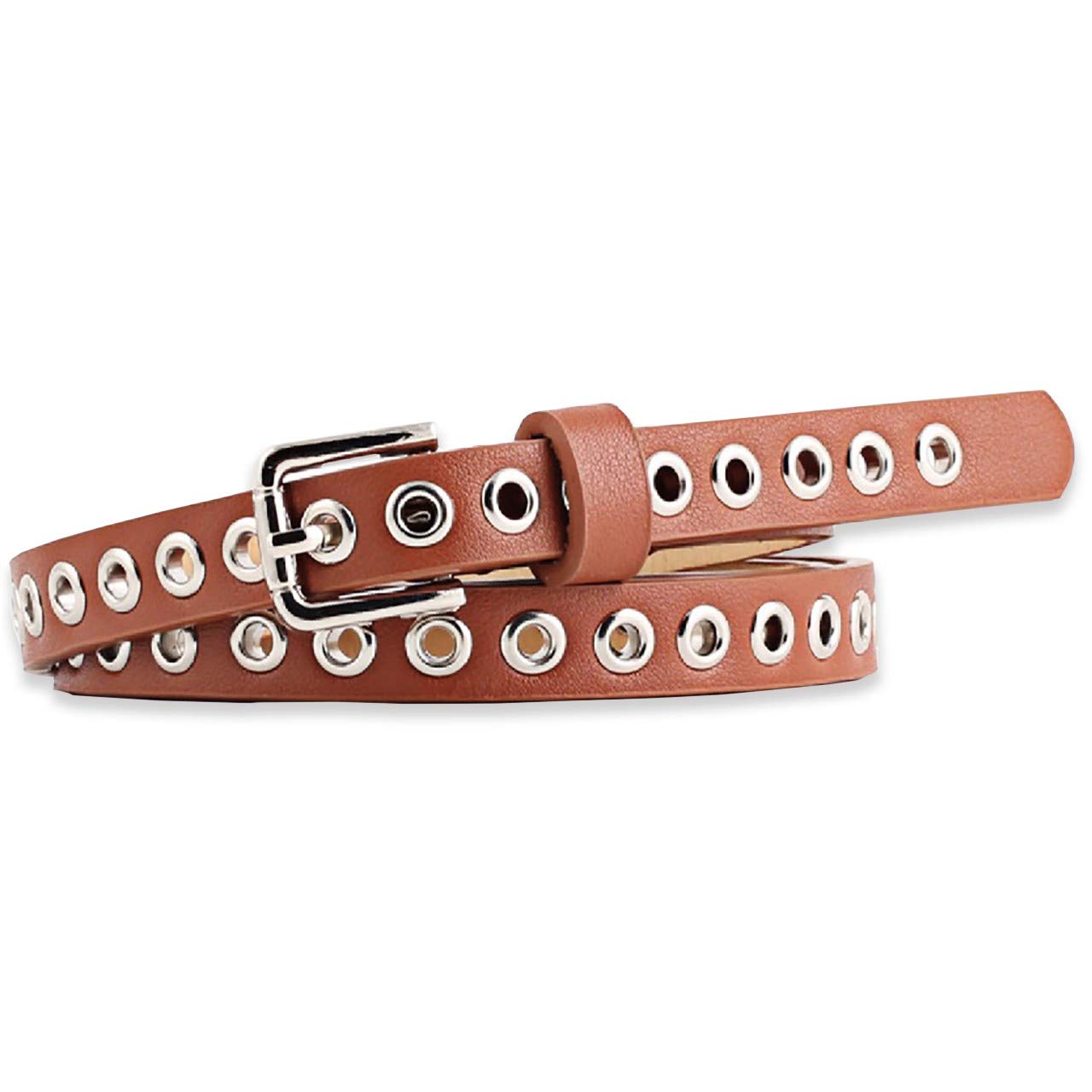 【送料無料】WHITE FANG(ホワイトファング) レザー ベルト おしゃれ ベルト 細い カジュアル ロック 皮 革 レディース BT012 色:06:キャメル、サイズ:サイズ