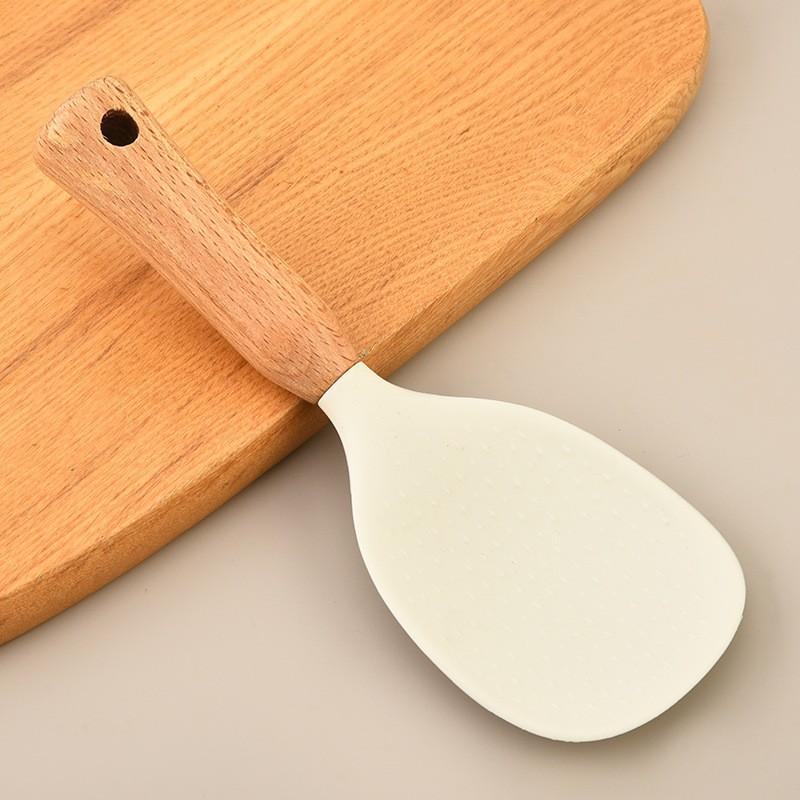 飯杓 シリコン製 キッチンツール 立つ しゃもじ 木製ハンドル 耐熱 ヘラ 米粒付きにくい 攪拌 ご飯盛り付け