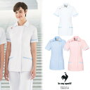 UQW1014 ルコックスポルティフ ナースウェア ジャケット 女性用 半袖 吸汗速乾 工業洗濯可 ストレッチ 透け防止 防汚 帯電防止 制菌 lecoqsportif 医療用 看護師 歯科衛生士 レディース レディス 女子 チェックテープジャケット 上衣 白衣 チュニック