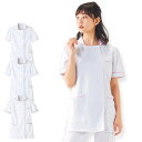 947 カゼン ナースウェア ジャケット 女性用 チェック 襟付き 半袖 工業洗濯可 制菌加工 透け防止 吸汗 制電 ストレッチ 携帯ポケット PHSポケット KAZEN 医療用 看護師 介護 歯科衛生士 看護学生 レディース レディス 白襟 上衣 チュニック 医務衣 ナース服 白衣