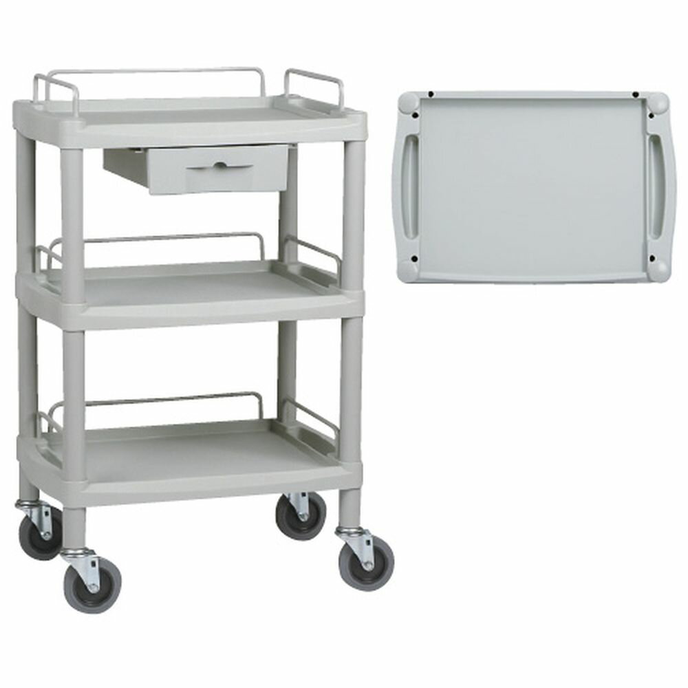 クラシックカート三段・引出付(組立式 Y-101H(グレー) 1台 松吉医科器械 23-5303-00 医療機器 保管カート クリニック用品 病院用具 組立簡単 移動式カート 手押しカート 材質耐久性 スムーズキャスター 収納便利 医療用ストレージ
