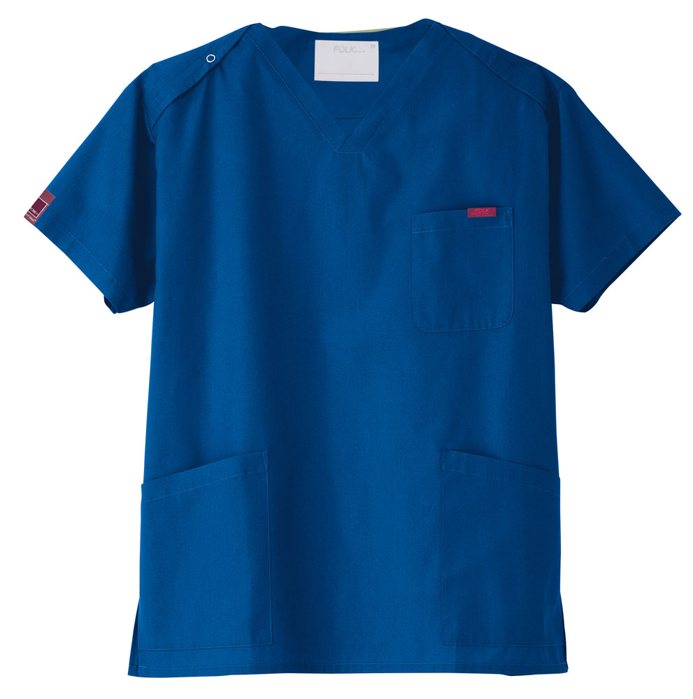 ※上記写真はTシャツと重ね着しています 【デザイン】 男女兼用 V衿 半袖 肩口には着脱しやすいアメリカンホックを使用 ポケット 左胸×1(幅約11×深さ約13cm) 左右腰×各1(幅約17cm×中央寄り深さ約21cm,外側深さ約17cm) ※幅と深さは当店にてLサイズを実測 誤差あり バックスタイル↓ ※上記写真は、商品の説明のため、同タイプの違う色の商品を掲載しております 【素材】 スクラブポプリン ポリエステル65% 綿35% 【カラー】 クラシックブルー 【サイズ】 SS、S、M、L、LL、3L、4L ※男性用サイズ表示です 女性の方は一つ下のサイズをお選びいただくことをお勧めいたします 例)通常、Mサイズを着用される女性の方には、当商品のSサイズをお勧めいたします 【即日発送可】 当店の営業日の午前11時までにご注文頂いた商品は当日発送致します それ以降の時間にご注文頂いた場合は翌日、または翌営業日の発送となります ※クレジットカード、または代金引換の場合 ※多数のご注文を頂戴した場合や実店舗の在庫もかねているため、 当日または翌営業に発送出来ない場合もございます お急ぎの場合は、必ずお問い合わせ下さい ※その他のお支払い方法をお選び頂いた場合は、 当店にてご入金が確認出来ました後に発送致します ※お取り寄せ品と共にご注文頂いた場合は 全てのご注文品が揃ってから発送致します フォーク社製 同素材のスラックスは下記ページにて販売中です 手術用/男女兼用ストレートパンツ(商品番号 6003SC) 女性用ブーツカットパンツ(商品番号 6005SC) スクラブにオススメインナー一覧 各種素材あります当商品は、全27色! 下記写真をクリックして頂ければ、それぞれのページへ移動します