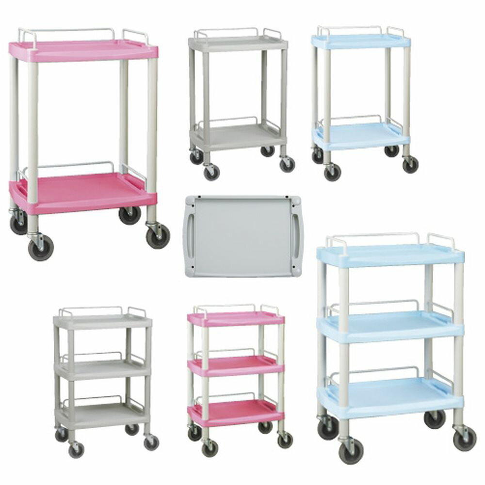 ●樹脂製ですので、軽量で扱いやすく、移動もスムーズです● 3色から選べるので、用途別・使用場所別・フロア別などの色分け管理にも役立ちます●工具不要で簡単に組み立てできます●P.821「クラシックカート用オプション」をご使用になれます。●品番:Y-101FB ,カラー:ブルー ,製品サイズ:W560×D385×H835mm ,詳細サイズ:《棚間隔》275mm ,重量:7.5kg ,材質:棚板=ポリプロピレン、支柱・手摺・キャップ=ABS ,キャスター(サイズ・双輪・ストッパー付):φ100mm ,耐荷重:30kg(1段)松吉医科器械|総合カタログ|医療・介護・ドクター・ナース