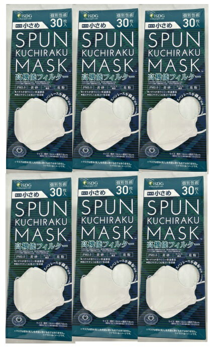 【30枚入×6箱セット送料込】医食同源ドットコム SPUN KUCHIRAKU MASK スパンレース 不織布マスク 小さめ ホワイト 個別包装 小さめサイズマスク 光沢感 立体 スパンレース不織布 ノーズV字カットの女性やお子様でも使いやすい小さめサイズ! ( 4562355182009 )