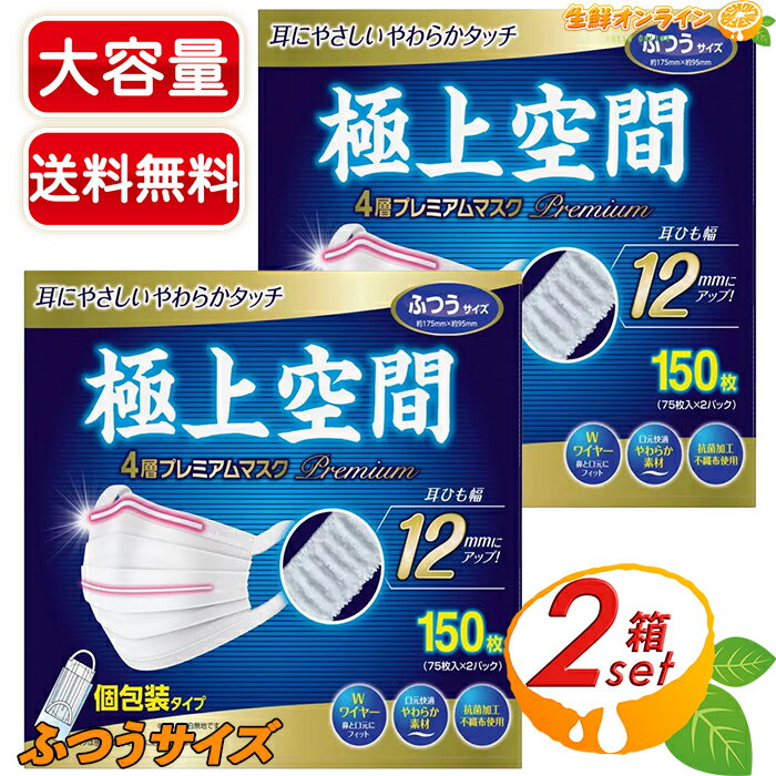 極上空間 プレミアム マスク ふつうサイズ 150 枚×2SET Premium Space Mask Regular Size 150 Count×2SET 大容量 使い捨てマスク 不織布マスク 花粉・ウイルス対策 個別包装 抗菌防臭加工不織布使用 リブ・ラボラトリーズ 4層プレミアムマスク