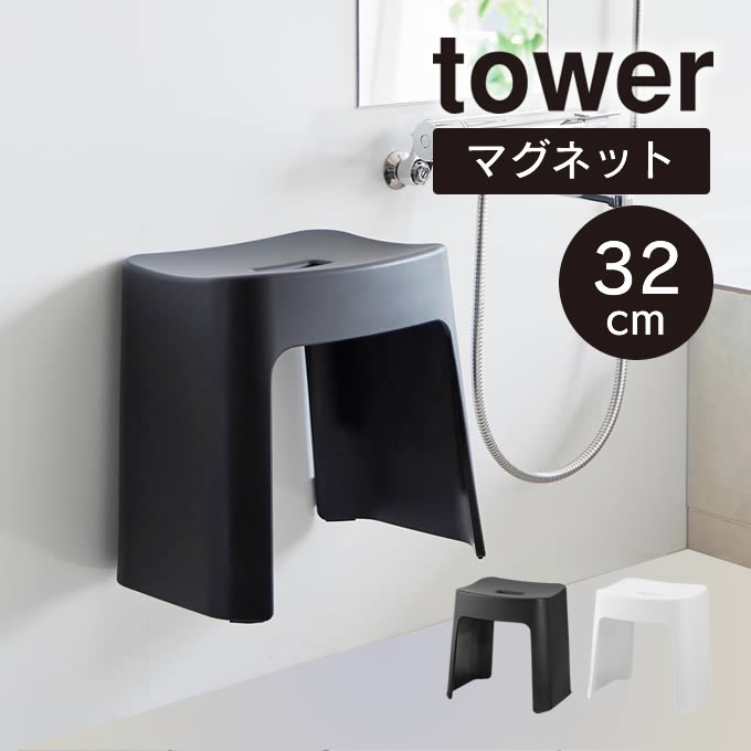 tower タワー 洗いやすいマグネット風呂イス SH32 1653 1654 山崎実業 / お風呂 椅子 風呂椅子 壁面 磁石 バスチェア 浴室 北欧 おしゃれ YAMAZAKI 白 黒 ホワイト ブラック 磁石 じしゃく 浮かせて収納 衛生的 スッキリ
