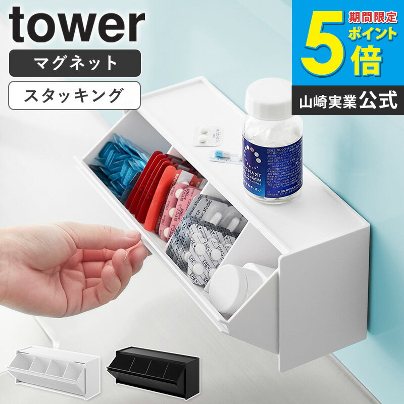 【365日出荷】[ マグネットお薬&サプリメント収納ケース タワー ] 薬入れ 小物 サプリメント ケース フラップ式収納 薬ケース 飲み忘れ tower 仕切り付き キッチン収納 ホワイト ブラック 1357 1358 yamazaki 山崎実業 yamazaki タワーシリーズ 【送料無料 ポイント5倍】