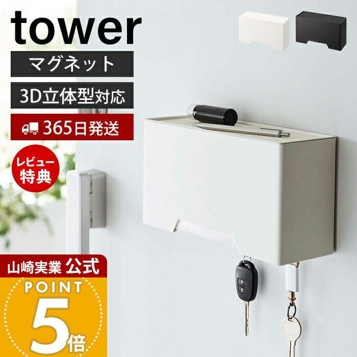 【365日出荷&当店限定特典付き】山崎実業 マグネット立体マスクホルダー タワー tower 公式 おしゃれ マスクケース マスク入れ マスクディスペンサー 3D立体型 プリーツ型 収納 磁石 鍵置き 小物 玄関 ホワイト 6087 6088