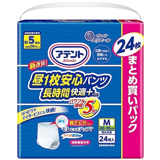 アテントパンツM昼1枚安心パンツ長時間快適プラス24枚5回吸収男女共用【大容量】