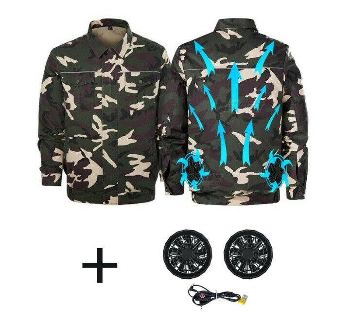 【送料無料!】ファン付きジャケット ユニセックス 反射材 リフレクター ミリタリー カモフラージュ 迷彩柄 ファン+USBケーブル付属! 日焼け止め 耐水性 耐摩耗性 通気性 バイクやアウトドアなどに最適! 日本未発売! ミリタリースタイルのファン付きジャケットでファッショナブルに快適性を実現! 【快適性・安全性・デザイン性を贅沢に取り込んだファン付きジャケット!】 そのファッショナブルなカモフラージュ柄のデザインが、一目でファン付きジャケットとわからないオシャレな一着!見た目もカッコよく、そして暑さにも強い!そんな贅沢な考えのもと、このミリタリースタイルがバッチリキマった空調ジャケットが生まれました!安全性にも考慮して前面と背面に反射材を縫い付けており、夜間に周囲からの認識性を高めることで安全に行動することが可能です!ファッショナブルなデザインで、いつものコーデにプラスで羽織るだけでオシャレに、そして快適に過ごすことが出来ます♪風量はLow/Mid/Highの3段階でその日の気温に応じて調節可能!ジャケットの他に、ファン×2個、ケーブル×1個付属しているので、モバイルバッテリーを準備するだけですぐ使えちゃいます!毎日のお出掛けは勿論、バイクでのツーリング、キャンプやハイキングなどのアウトドア、外での仕事などにピッタリです!【カラー】カモフラージュ【サイズ】L、XL、XXL、XXXL※実際のサイズとは若干の差異がある場合がございます。※商品の仕様やデザインはメーカー都合により予告なく変更になる場合がございます。※モバイルバッテリーは別売りです。 メーカーに「在庫がある商品」では通常、お届けまでに「3週間前後」のお時間を頂いております。メーカーに「在庫がない商品」に関しましては、お届けまでに「1ヶ月以上」、またはタイミングにより「売り切れ」や「生産終了」となっている場合がございますので、何卒ご理解下さいますようお願い致します。また、商品によっては説明不足な点や、システムのタイムラグによって納期や入荷状況が表示内容とは異なっている場合がございますので、お届けまでのお時間や商品についてのご不明な点などがございましたら、どうぞお気軽にお問い合わせ下さい!商品画像はできる限り現品を再現するように心がけておりますが、ご利用のモニターにより差異が生じますので予めご了承下さい。 1