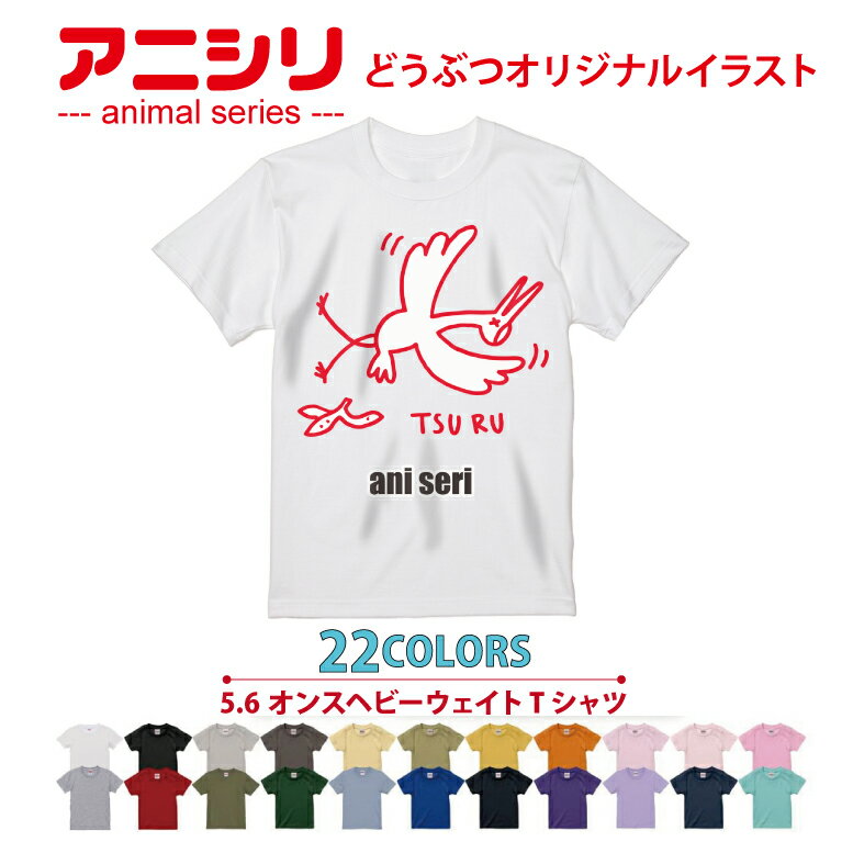 アニマルシリーズ!Tシャツ tsuru 動物 animal アニシリ 22色 グラフィック graphic メンズ レディース キッズ オリジナルイラスト プレゼント 親子ペア かわいい おもしろ ゆるかわ いろいろ選べる よれない 綿100% 鶴 ツル