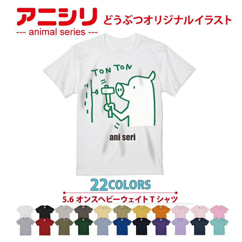 アニマルシリーズ!Tシャツ pig tonton 動物 animal アニシリ 22色 グラフィック graphic メンズ レディース キッズ オリジナルイラスト プレゼント 親子ペア かわいい おもしろ ゆるかわ いろいろ選べる よれない 綿100% ブタ トントン