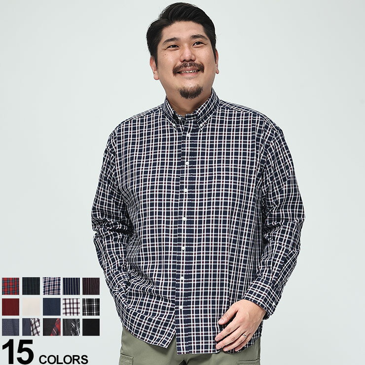大きいサイズ メンズ B&T CLUB (ビーアンドティークラブ) 綿100% ナチュラル ストレッチ ツイル マルチ 無地 チェック柄 ボタンダウン 長袖シャツ シャツ 半袖 チェック ポケット EOBT47