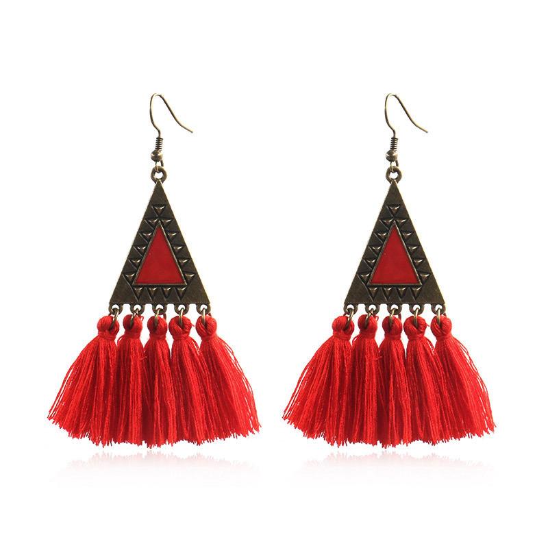 ピアス アクセサリー レディース おしゃれ ファッション 赤 旅行 写真 休暇 海辺 ボヘミアン レトロ エスニック タッセル ペンダント トライアングル