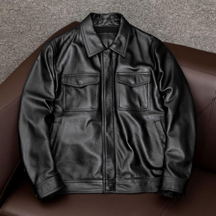 少量生産 革ジャン メンズ/レザージャケット本革 カウハイドレザー 天然イタリア製 牛革クラシックスタイルブラック