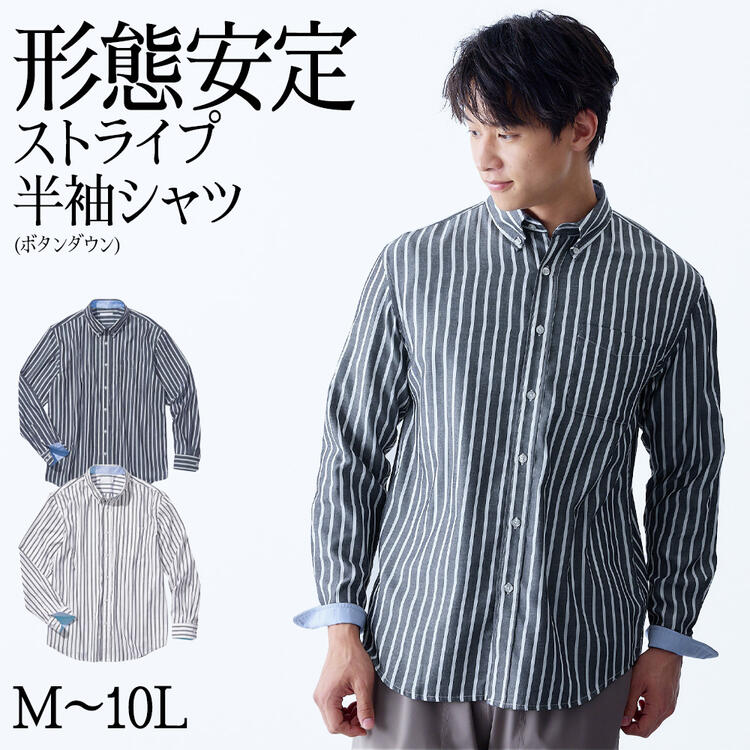 シャツ 長袖 形態安定 消臭テープ付 ストライプ ボタンダウン 肩まわり お腹ゆったり セルフフィット メンズ M-10L 大きいサイズ ニッセン | ファッション 長袖シャツ オーバーシャツ 襟付き ストライプ柄 しわになりにくい きれいめ カジュアル