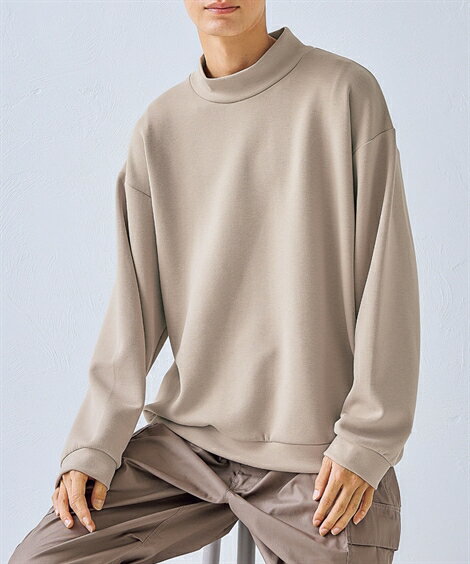 トップス ダブルフェイス オーバーサイズ モックネックトレーナー M-10L 大きいサイズ メンズ ニッセン nissen | ダブルフェイス素材 モックネック ゆったり オーバーサイズ仕様 リラックス ベーシック カジュアル