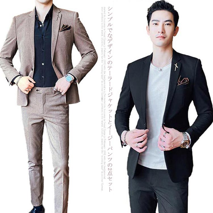 テーラード セットアップ ジャケット ビジネススーツ メンズ 春秋冬 結婚式 長袖 パンツ スラックス パーティー 着心地良い 礼服 スリム 就職スーツ シンプル 大きいサイズ オフィス カジュアル 無地 上下セット