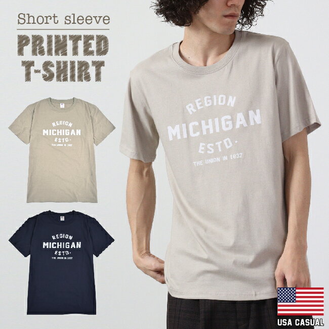 メンズ プリント Tシャツ メンズ レディース 夏 カジュアル ペア アメリカ USA コットン お揃い カジュアル カットソー ベージュ ホワイト S M L LL