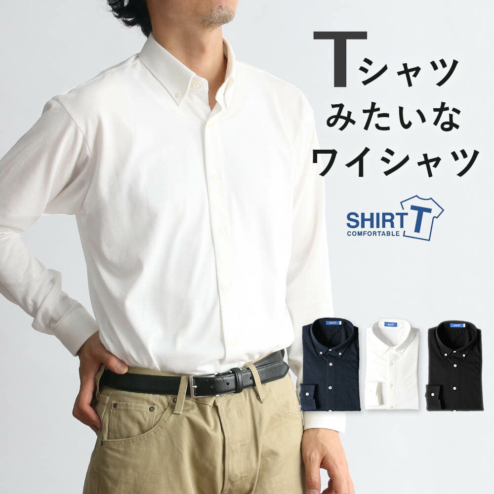 ワイシャツ 長袖 ニットシャツ 形態安定 メンズ ストレッチ ニット Tシャツのようなワイシャツ 生地 カッターシャツ ビジネス 仕事 白 ホワイト スリム 標準体 おしゃれ カジュアル リモートワーク カットソー 素材 楽 細身体 [M便 1/1]