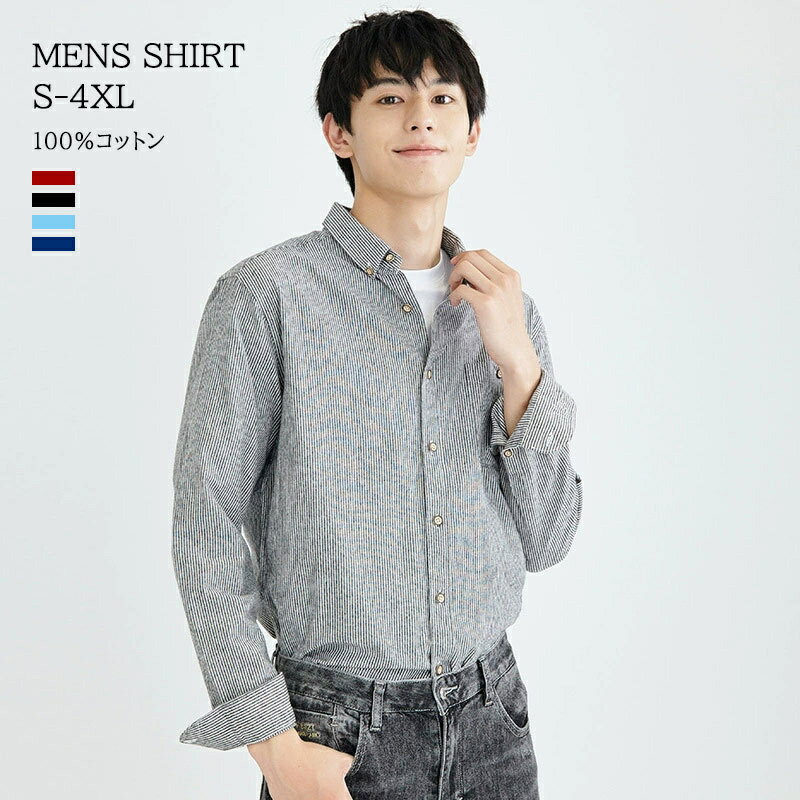 送料無料 yシャツ メンズ 長袖シャツ ビジネスシャツ ボタンダウン ワイシャツ コットン カジュアル コットン コットン ストライプ オールシーズン 春 夏 秋 冬 かっこいい 父の日 ギフト プレゼント 通勤 大きいサイズ