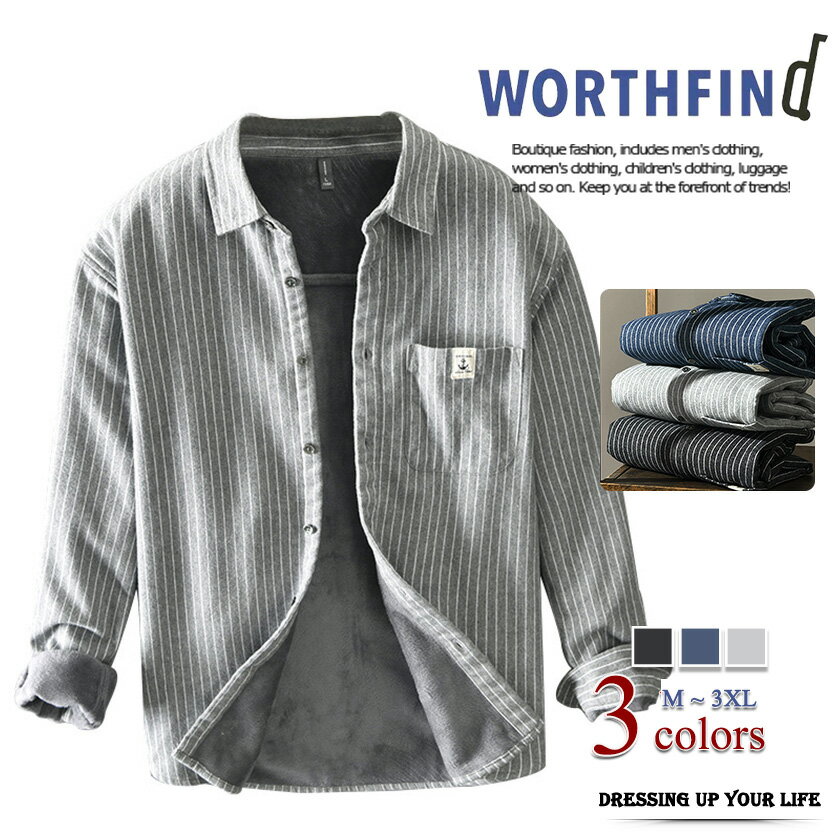 カジュアルジャケット カジュアルシャツ メンズ ジャケット シャツ 長袖 裏起毛 厚手 アウター春 秋 冬 暖かい オシャレ ストライプ