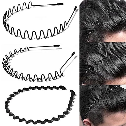 shefunメンズカチューシャ洗顔スプリングヘアバンド鉄波型くし付き滑り止め痛くない黒シンプル前髪髪飾り2本セットJP183(B)