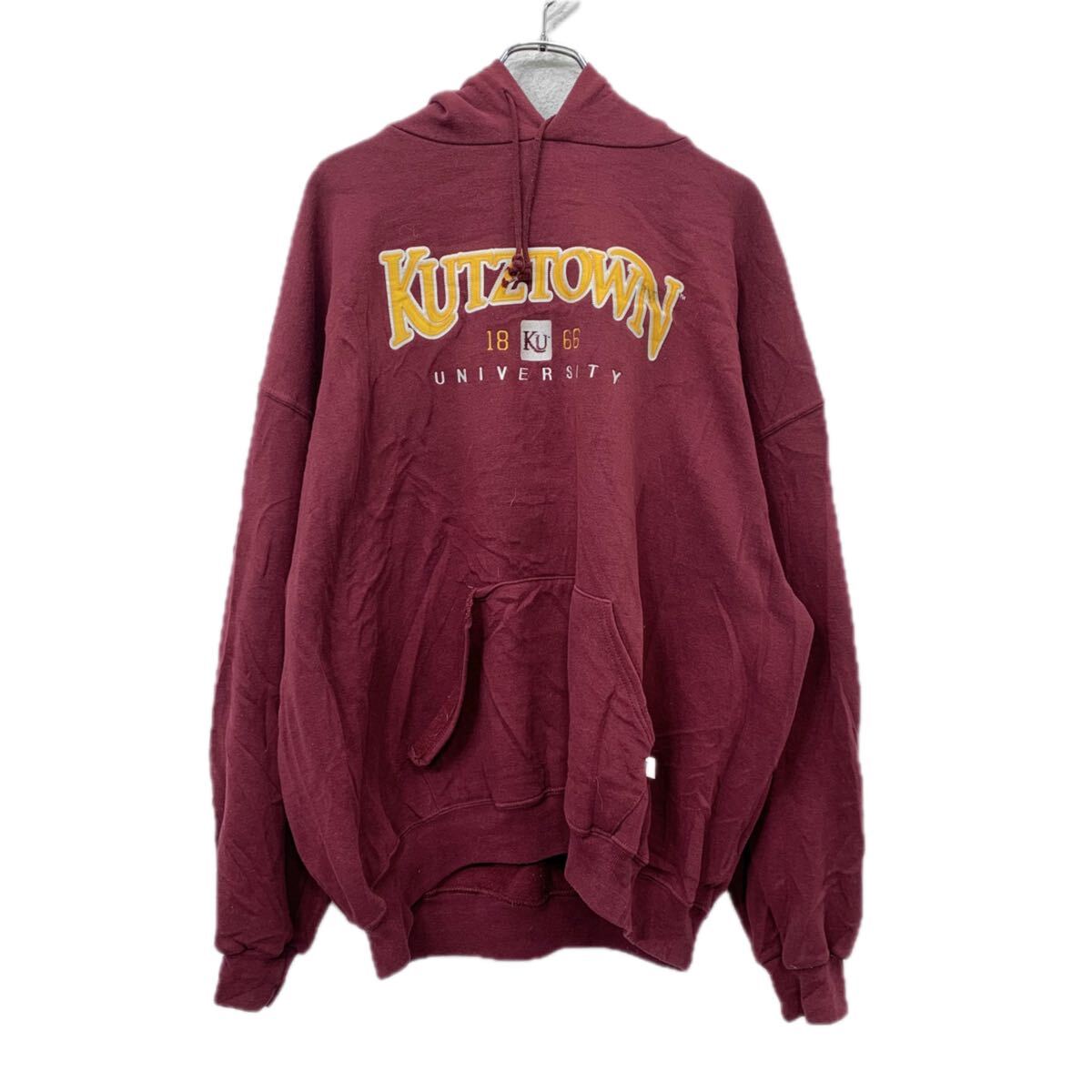 【中古】【古着】 メキシコ製 RUSSELL ATHLETIC プリントスウェット パーカー XXL ワインレッド ラッセルアスレチック カレッジ 裏地起毛 秋物 a712-6742