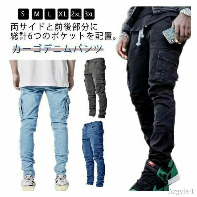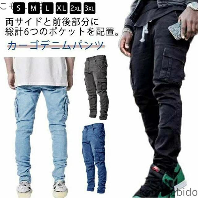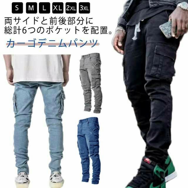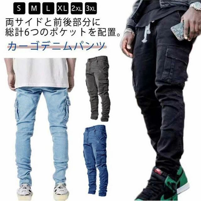 カーゴデニムパンツ S~3XL程よい伸縮性のある生地を使用し、座ったり、足を曲げたりするのも楽にできます。脚のラインにフィットさせることで脚長効果が期待できる、細身のスキニーデニム両サイドと前後部分に総計6つのポケットを配置。デザイン性に機能性どちらも両立!バランスの取れたスマートな佇まいを演出。 サイズ S M L XL 2XL 3XL サイズについての説明 S M L XL 2XL 3XL サイズ:写真通り ※上記サイズは平置き実寸になります。サイズ表の実寸法は商品によって1-3cm程度の誤差がある場合がございます。 素材 デニム 色 ライトブルー ブラック グレー ブルー 備考 ●サイズ詳細等の測り方はスタッフ間で統一、徹底はしておりますが、実寸は商品によって若干の誤差(1cm~3cm )がある場合がございますので、予めご了承ください。 ●商品の色は、撮影時の光や、お客様のモニターの色具合などにより、実際の商品と異なる場合がございます。あらかじめ、ご了承ください。 ●製品によっては、生地の特性上、洗濯時に縮む場合がございますので洗濯時はご注意下さいませ。 ▼色味の強い製品によっては他の衣類などに色移りする場合もございますので、速やかに(脱水、乾燥等)するようにお願いいたします。 ▼生地によっては摩擦や汗、雨などで濡れた時は、他の製品に移染する恐れがございますので、着用の際はご注意下さい。 ▼生地の特性上、やや匂いが強く感じられるものもございます。数日のご使用や陰干しなどで気になる匂いはほとんど感じられなくなります。