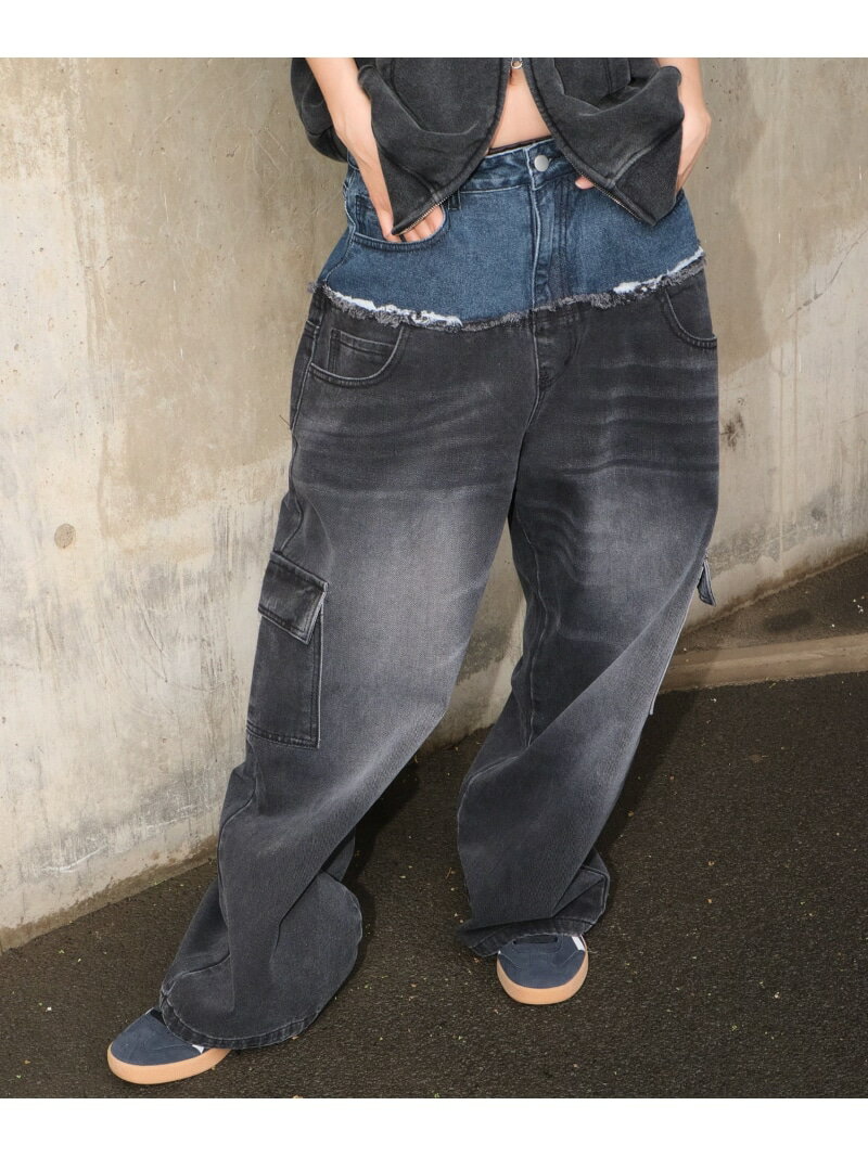 【SALE 7699円→5499円】【WEGO】ダブルウエストカーゴデニムパンツ