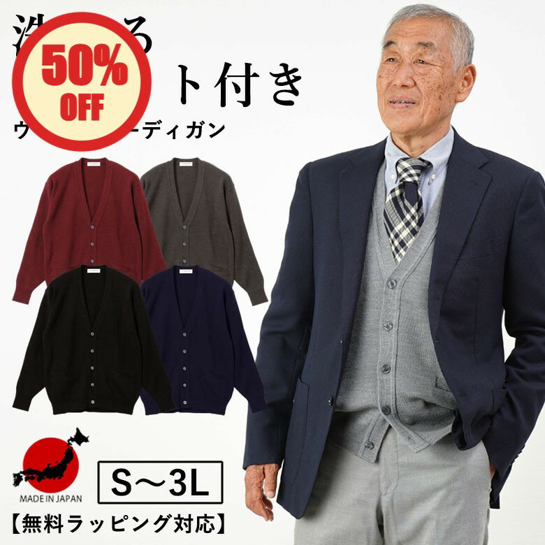 【50%OFF】日本製 ウール混 洗えるニット シニアファッション 70代 80代 60代 春 夏 秋 冬 ポケット付き前開きカーディガン メンズ 男性 ウォッシャブル ビジネス ゴルフ 仕事 S M L LL3L 紳士 服 お年寄り 高齢者 誕生日プレゼント 暖かい 防寒 あったか ギフト sサイズ