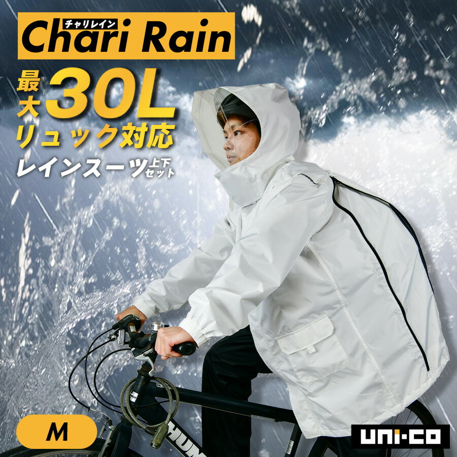 【12時まで即日発送】置き配可 Mサイズ レインスーツ上下セット チャリレイン HY0004 大型リュック対応 ヘルメット対応 レインコート 自転車 メンズ レディース 男子学生 キッズ 通勤 通学 高校 中学 視界良好 レインウエア 合羽 カッパ 学生 uni-co ユニコ 即日発送