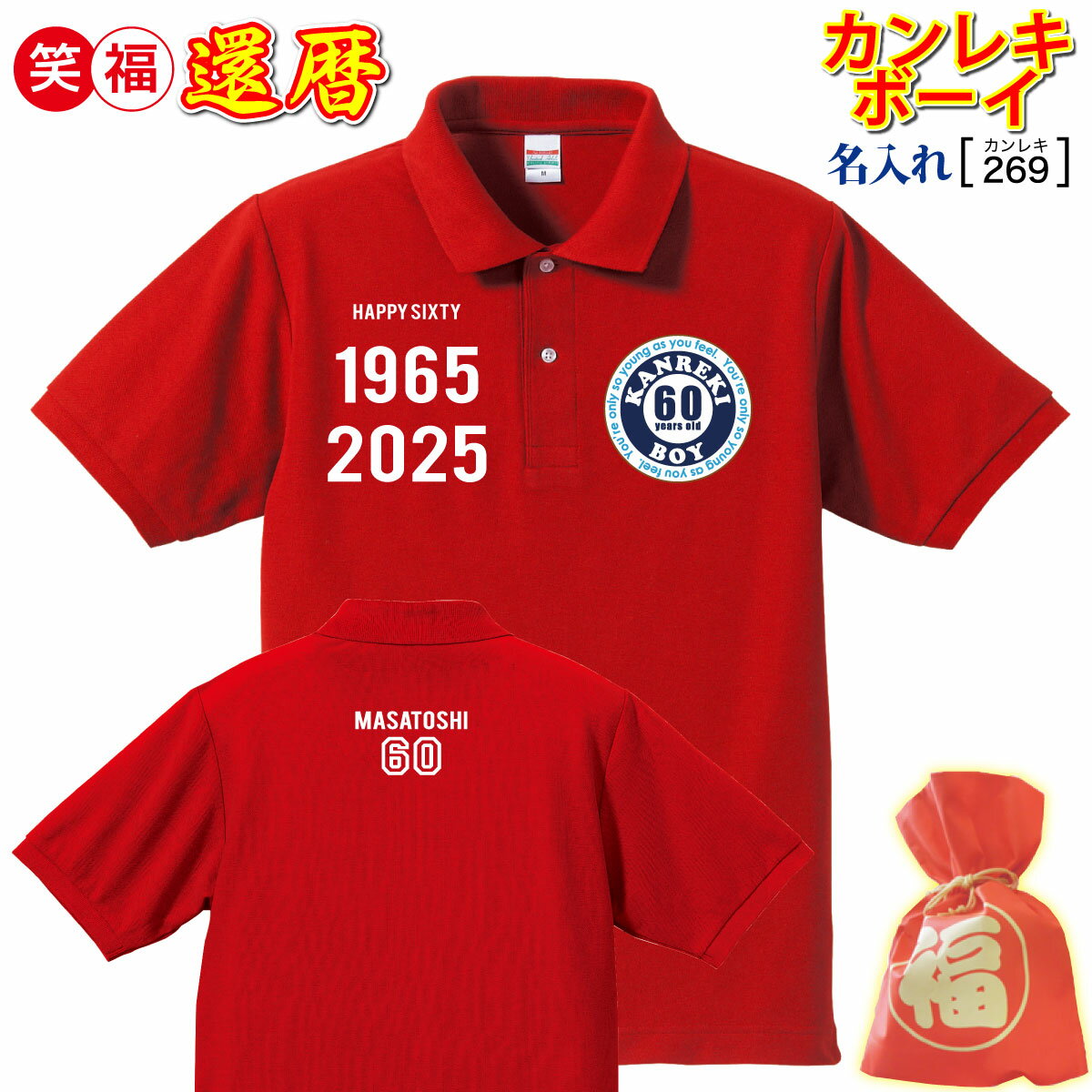 還暦祝い プレゼント 男性 父 上司 友人 赤色の【名入れプリント ポロ】大人気! 還暦 60 メッセージラベル "KANREKI BOY" オシャレ! 普段使い/スポーツ 誕生日 敬老の日 父の日 贈り物 記念/メッセージ 最短3日で発送/ 手作業仕上げ(★きれい)/カンレキボーイ 喜ばれる