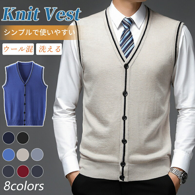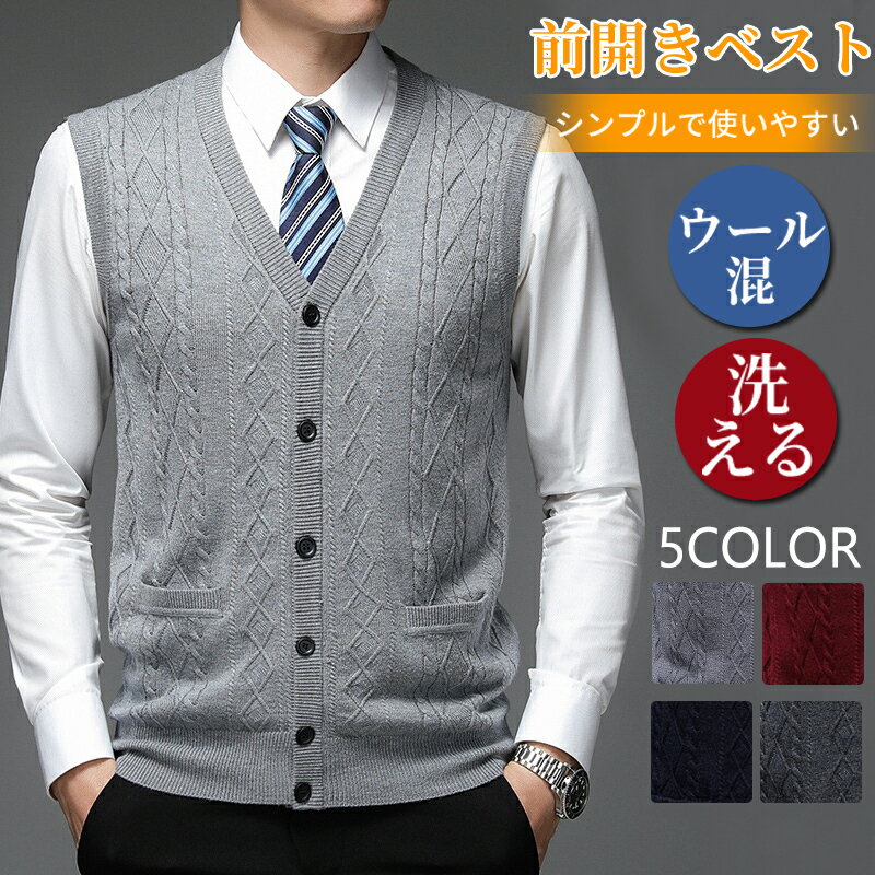 ★送料無料★ニットベスト メンズ 前開き ウール あったか Vネック 洗える ビジネス 重ね着 通勤 フォーマル 防寒 スーツに合わせる トップス 紳士 ゴルフウェア オフィス 普段着 父の日 クリスマス バレンタイン プレゼント メンズファッション Knit vest